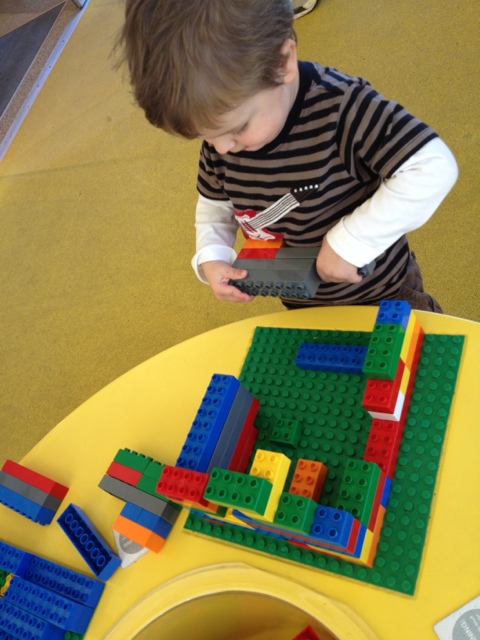 - Two tiny kids were acting out a story with a couple of customized Lego characters they had made.